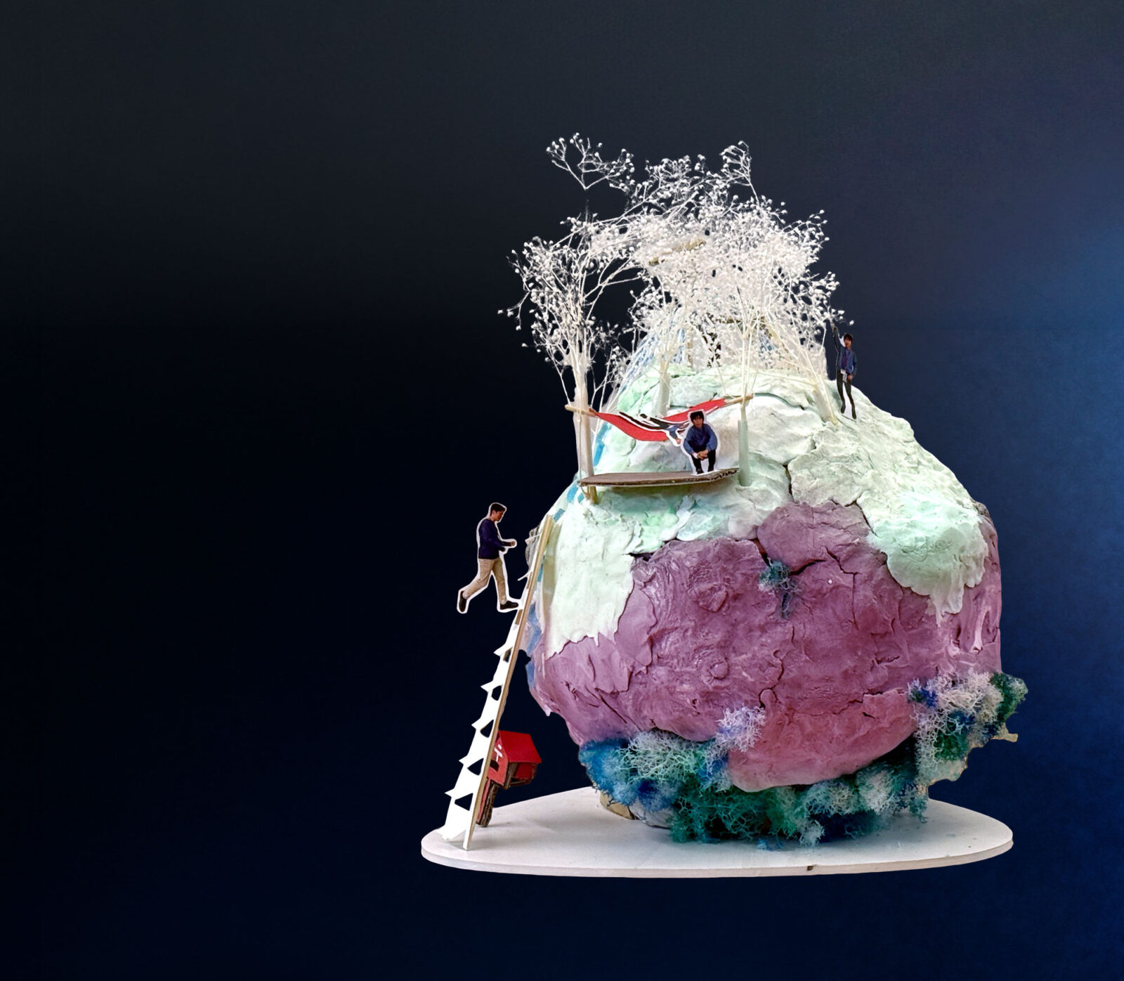 One hundred small “Houses of the Heart,” crafted with care and imagination, are connected to form a collective vision ̶ “Peace Island.”